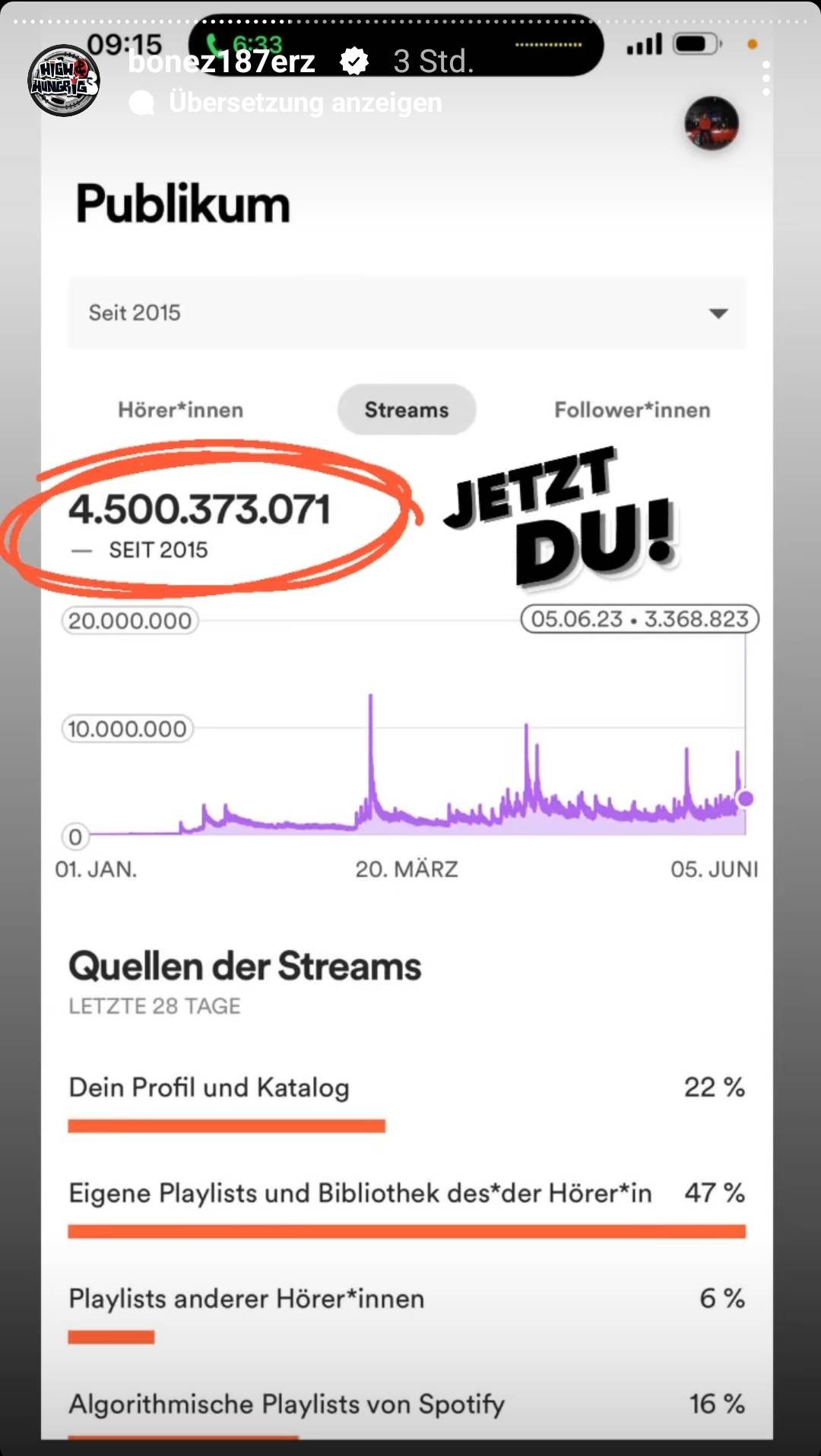 In ihrer Instagram-Stories zeigen RAF und Bonez ihre All-Time-Streams.