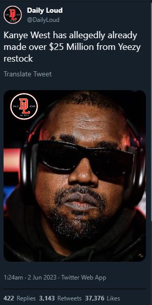 Laut Berichten verkauft adidas am ersten Tag 680.000 Paar. Dies wäre ein Gewinn von 170 Mio. US-Dollar, wovon rund 25 an Kanye gehen.