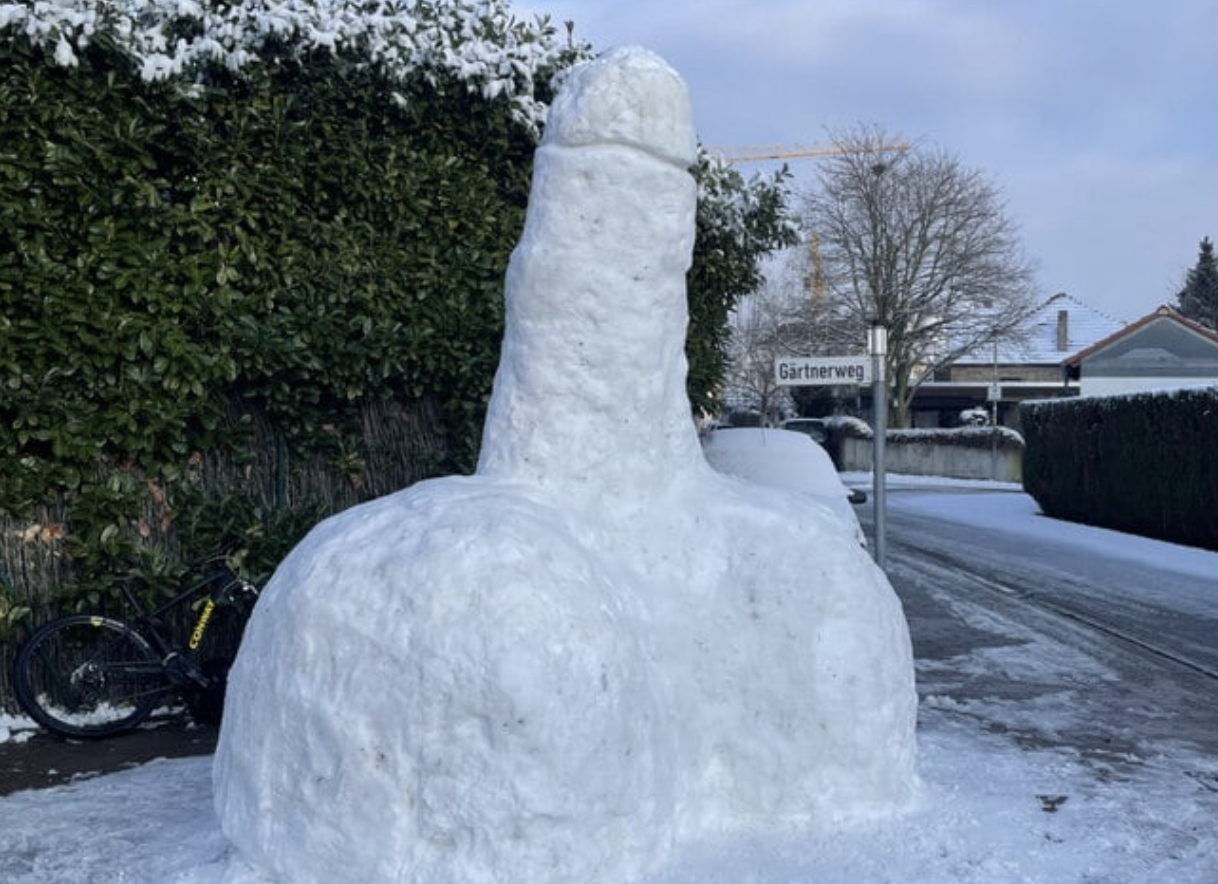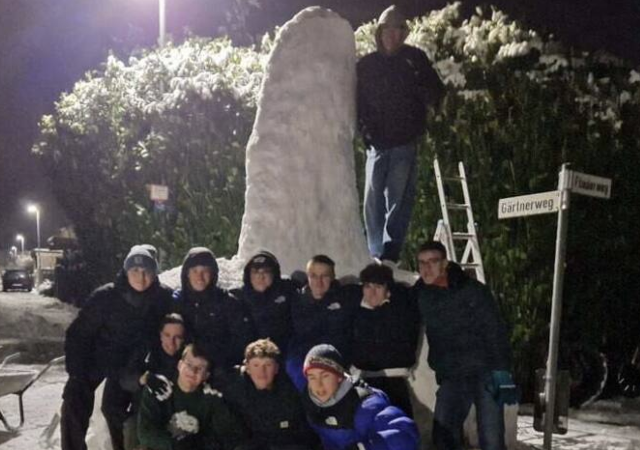 Innerhalb von rund 4 (!) Stunden bauten die Teenager an der Kreuzung Gärterweg einen rund 3,30 Meter hohen Schnee-Penis auf!