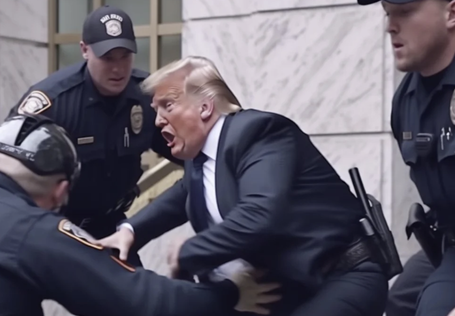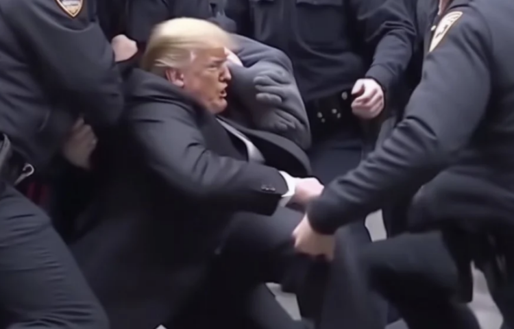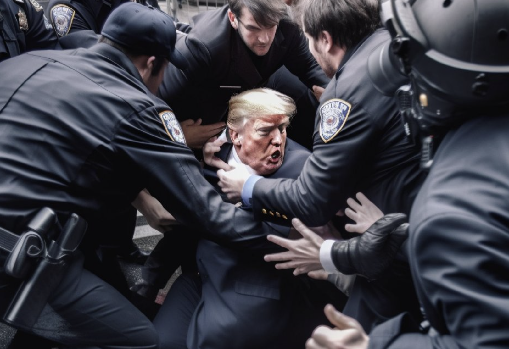 Auf den Bildern, die derzeit auf Twitter die Runde machen, ist ein vermeintlicher Donald Trump zu sehen, der sich vehement gegen seine Verhaftung wehrt – dabei jedoch von New Yorker Polizisten festgehalten wird.