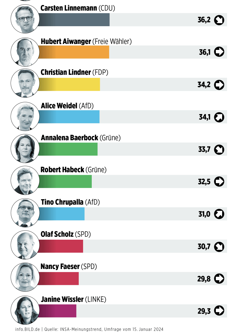 Weidel, die am Montag auf der Bauern-Demo am Start war, ist mittlerweile auf Platz 14 – also 4 Plätze vor dem Kanzler (18).