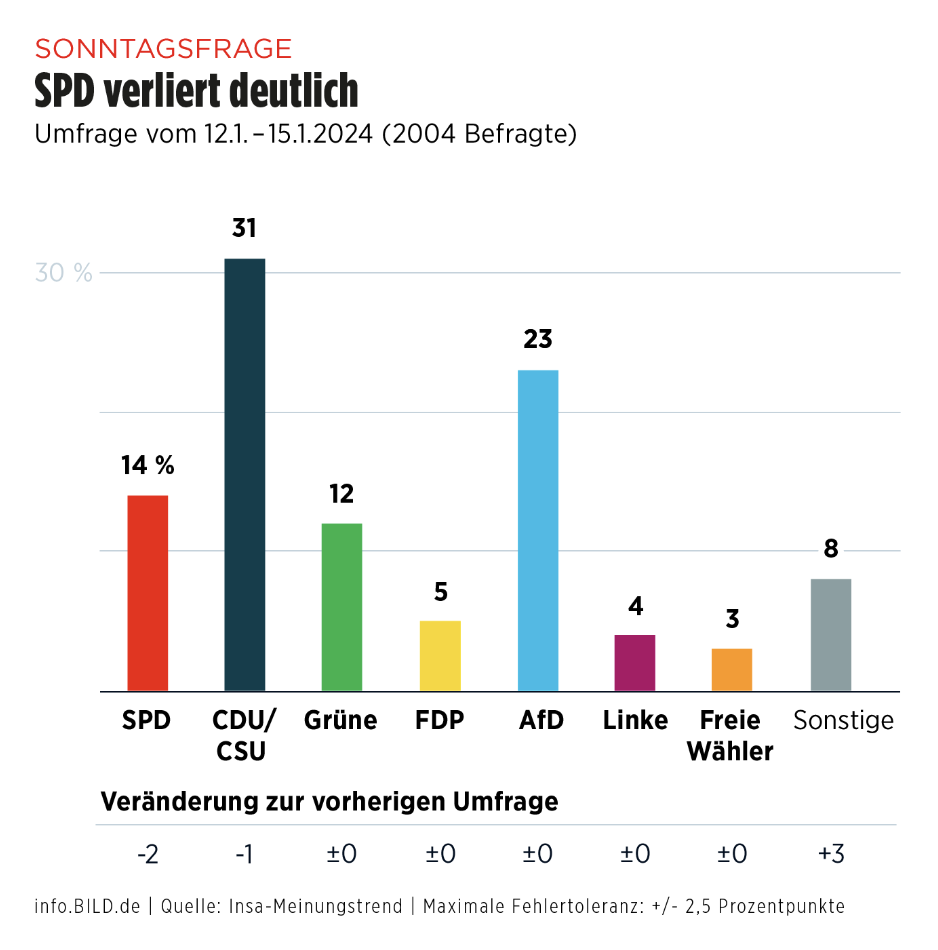 Wenn am Sonntag Bundestagswahl wäre, würden nur noch 14 Prozent der Partei des Kanzlers ihre Stimme geben!