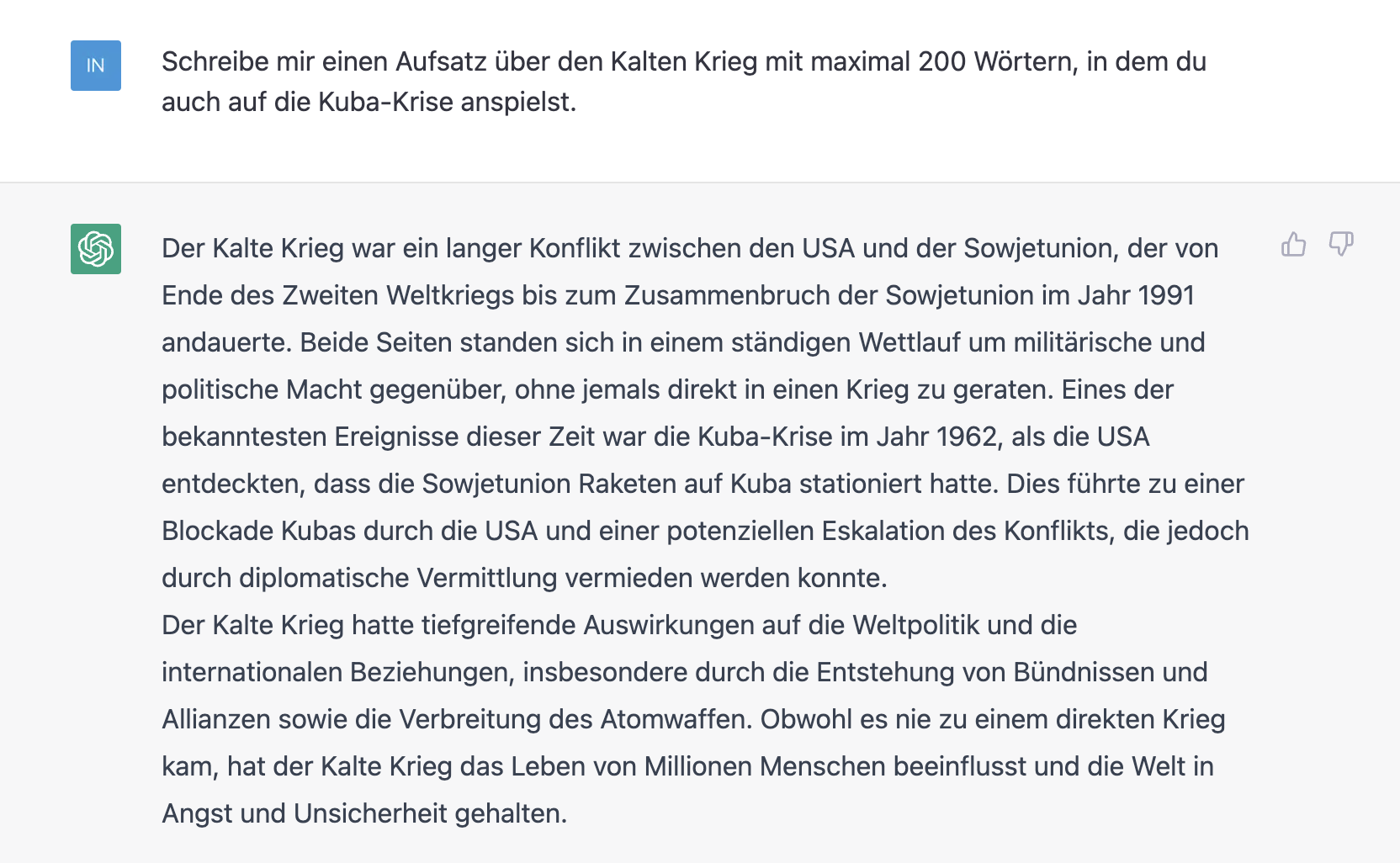 Egal ob du einen Aufsatz über den Kalten Krieg, die Lösung einer Mathe-Aufgabe, das nächstbeste Möbelhaus oder einfach nur einen Partner zum Reden haben willst – ChatGPT kann ALLES.