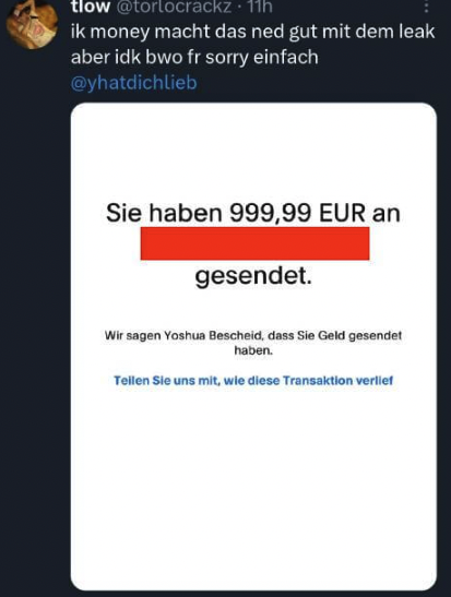„Ich weiß, dass Geld macht das nicht gut mit Leak aber ich weiß nicht, Bro, ehrlich sorry einfach“