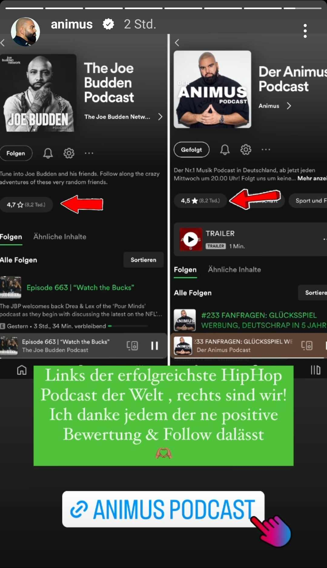 Der Podcast von Animus kommt extrem gut an – sogar so gut, dass er mittlerweile einfach so viele Bewertungen hat wie der Podcast von Joe Budden.