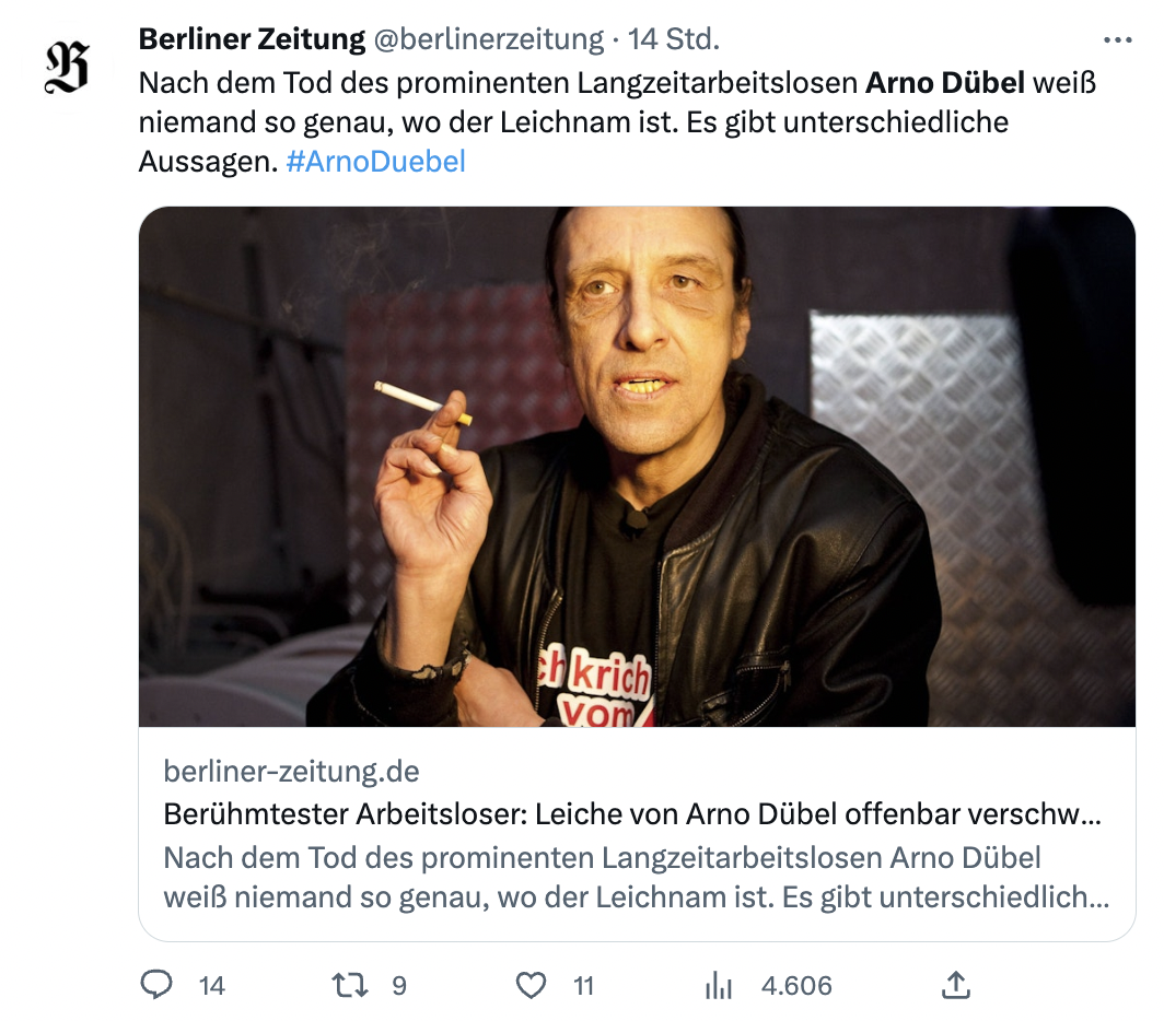 In dieser Woche kommt die Nachricht aus Hamburg. Deutschlands berühmtester Arbeitsloser ist verstorben! Doch jetzt berichtet BILD: Es gibt ein Rätsel um Arno Dübels Leiche…