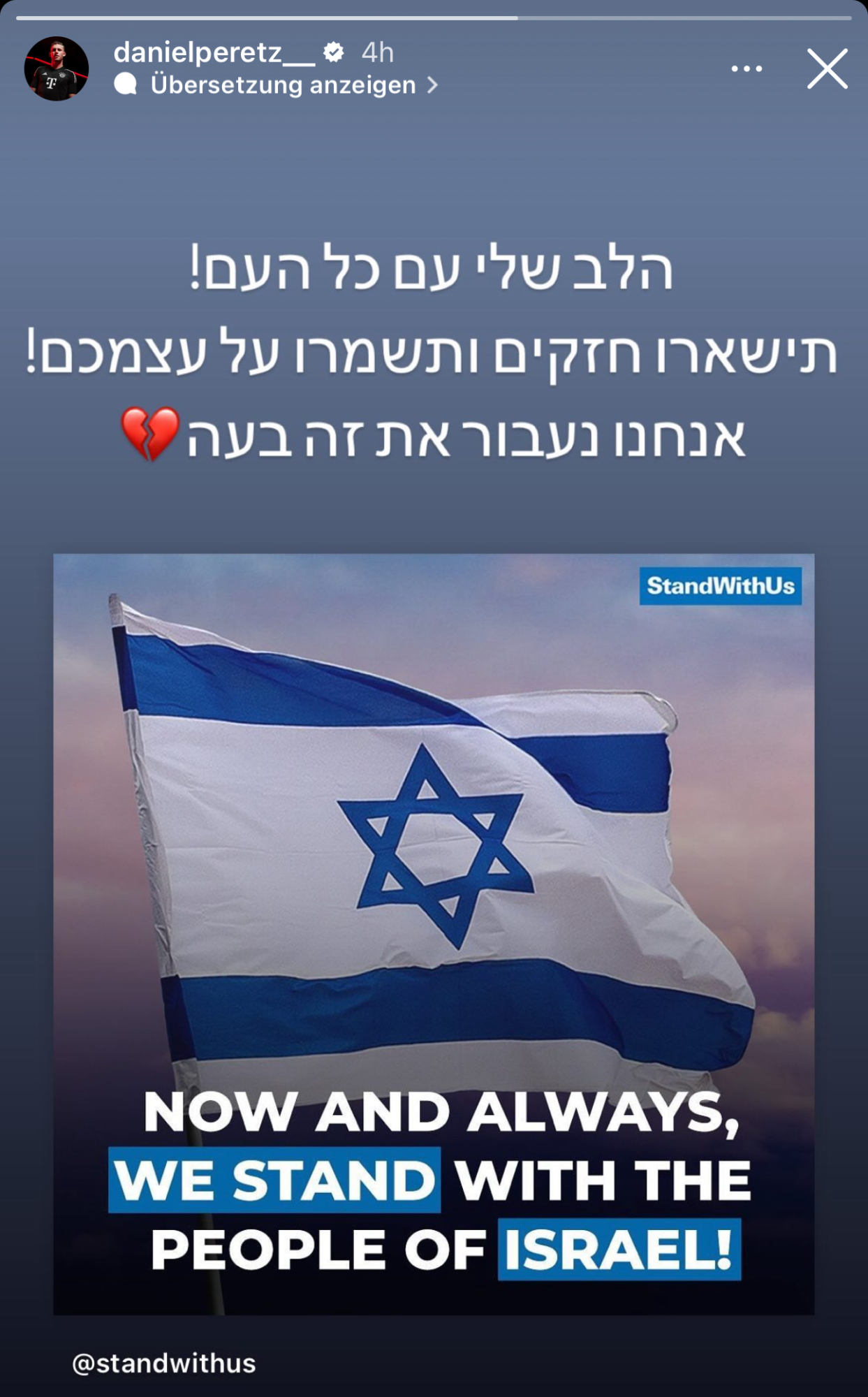 Auch Bayern-Neuzugang Daniel Peretz meldete sich am Samstag mit einem besorgten Statement zu Wort.