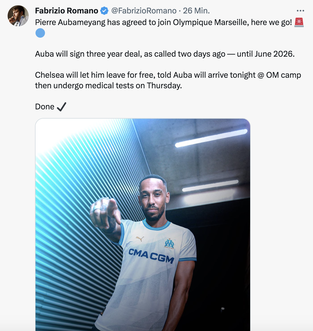 2018 wechselte Auba vom BVB zu Arsenal. Damals noch für über 60 Millionen!
