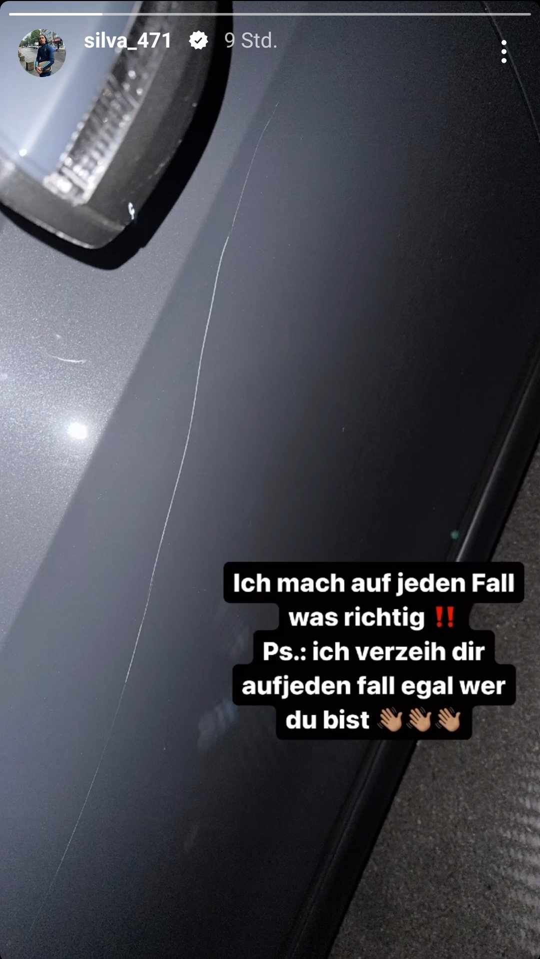 In seiner Instagram-Story zeigt das Signing von Majoe, dass eine unbekannte Person in der vergangenen Nacht sein Auto zerkratzt hat. Silva schreibt dazu: