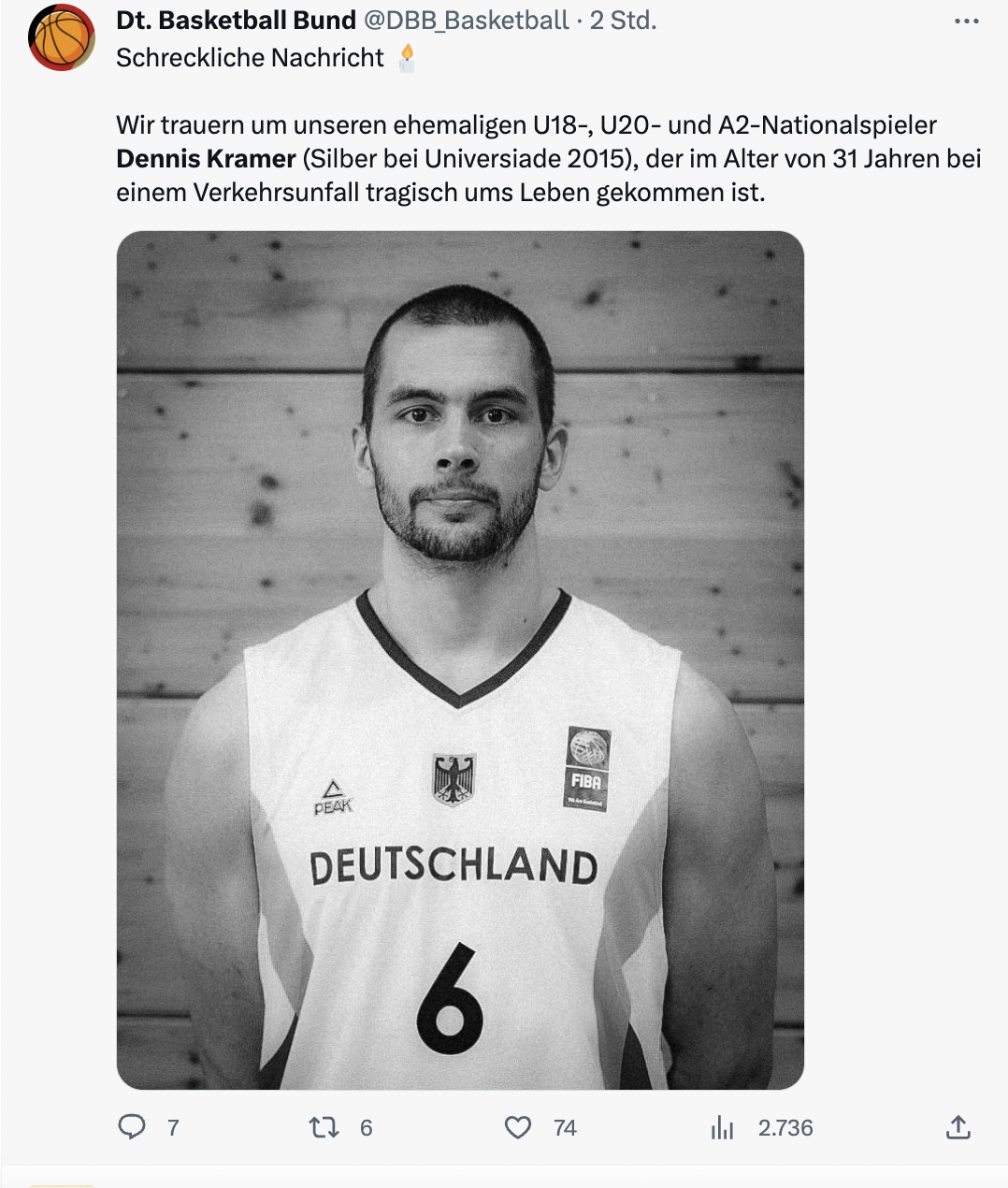 Erschütternde Nachrichten aus dem deutschen Basketball! Am Wochenende stirbt ein ehemaliger Nationalspieler bei einem Autounfall. Er war erst 31 Jahre alt!