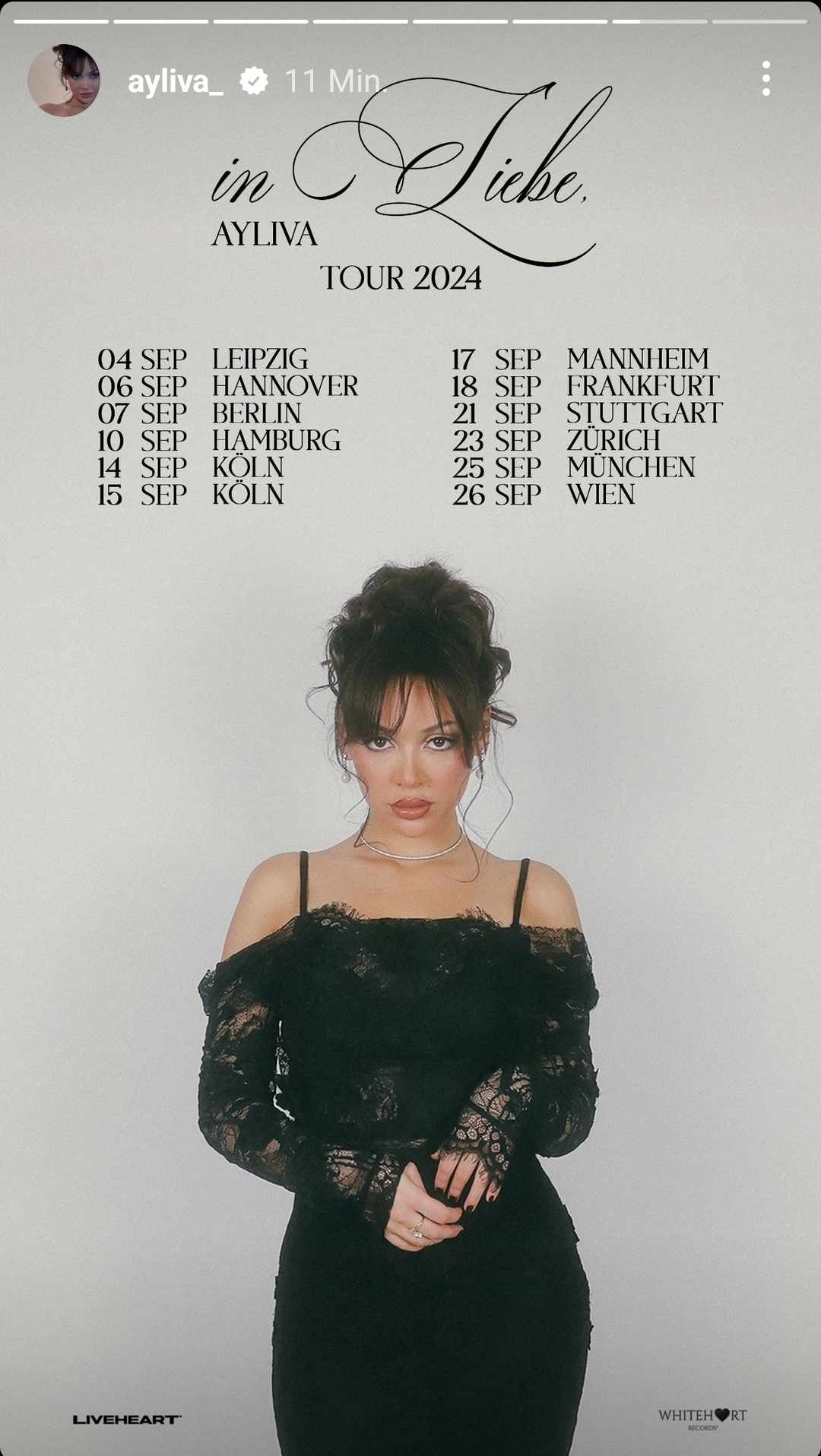 Soeben gibt Ayliva auf Instagram bekannt, dass ihre Tour für das kommende Jahr bereits steht.