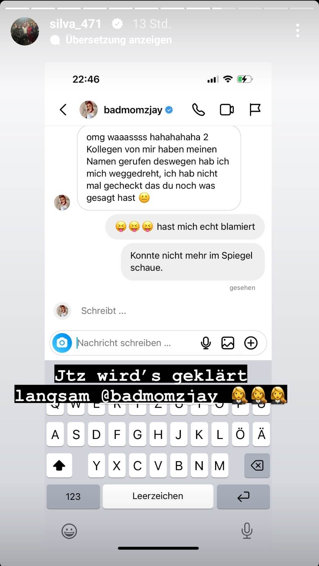 Badmomzjay sieht die Story und schreibt Silva sofort eine Nachricht, in welcher sie erklärt, dass sie ihn gesehen hat.