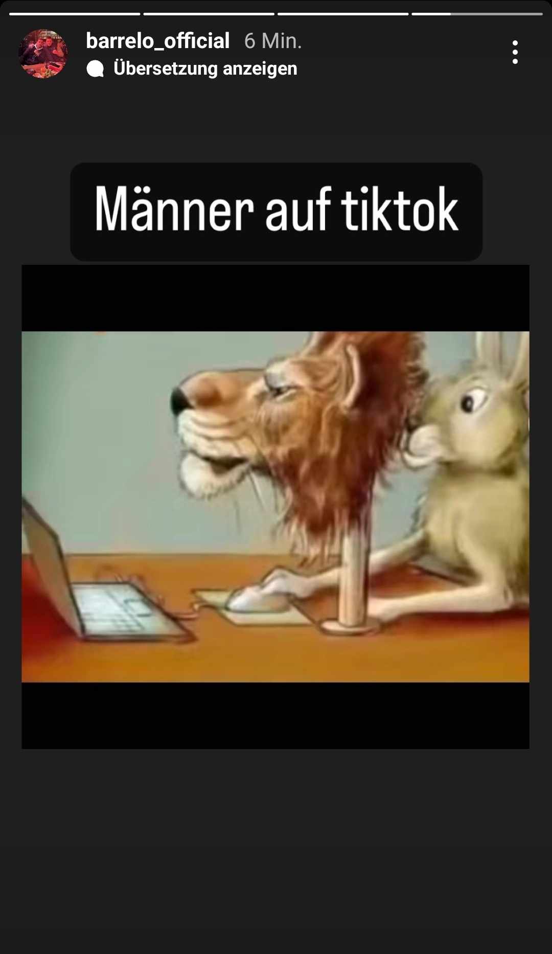 In seiner Instagram-Story teilt Barrelo ein Meme, auf welchen TikTokern unterstellt wird, dass sie sich im Internet wie ein Löwe benehmen, obwohl sie Hasen sind.