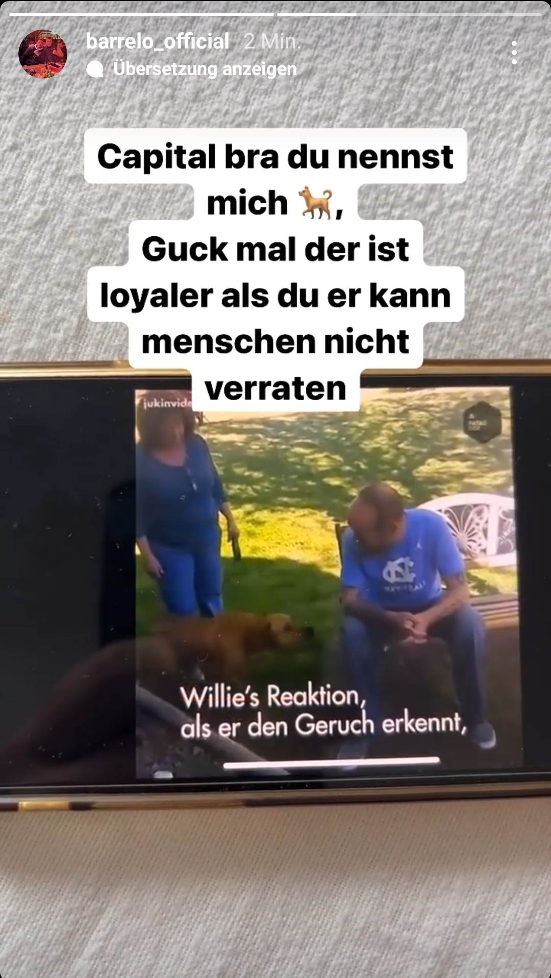 „Capital Bra, du nennst mich Hund. Guck mal, der ist loyaler als du. Er kann Menschen nicht verraten“