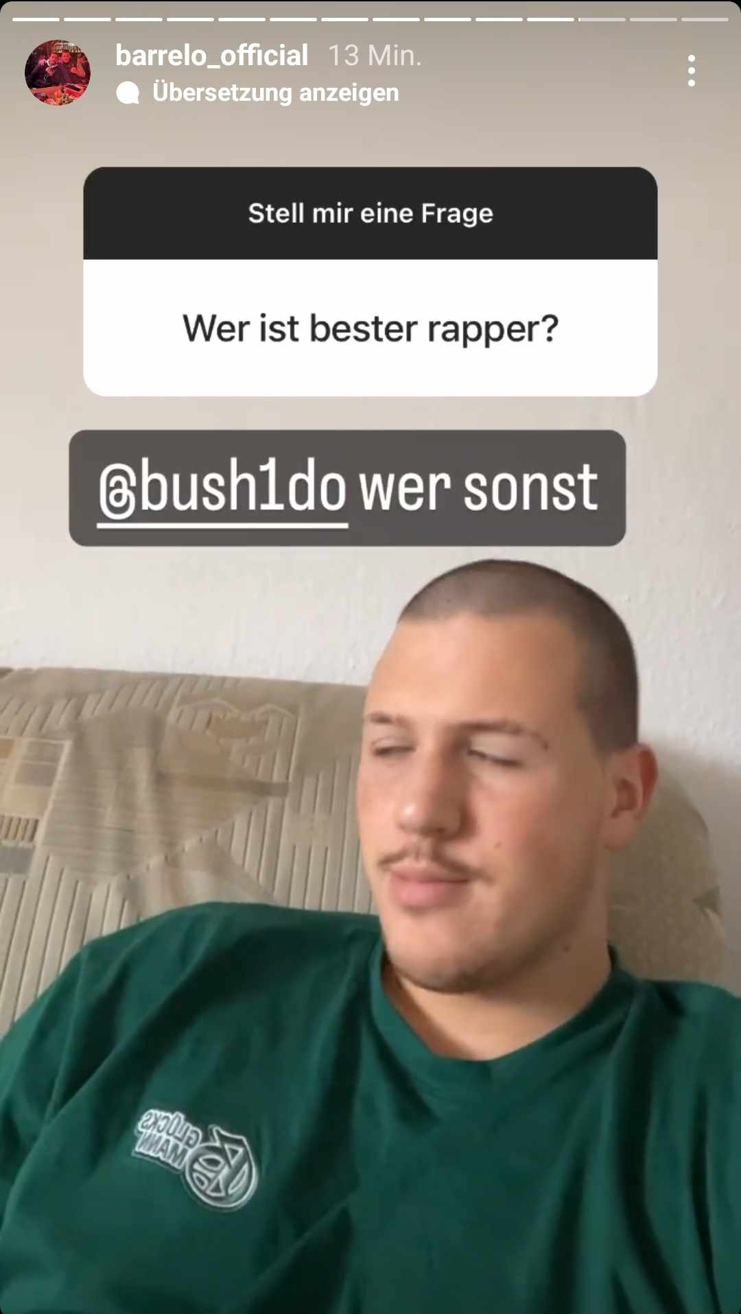 In seiner Instagram-Story verrät Barrelo, dass Bushido der für ihn beste Rapper ist.