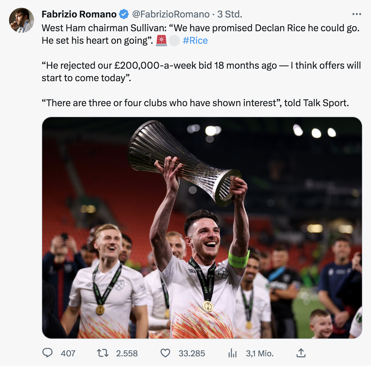Am Mittwoch Abend holt er sich seinen ersten internationalen Titel: Conference League mit West Ham! Und direkt danach steht fest, worauf alle Bayern-Fans hoffen…