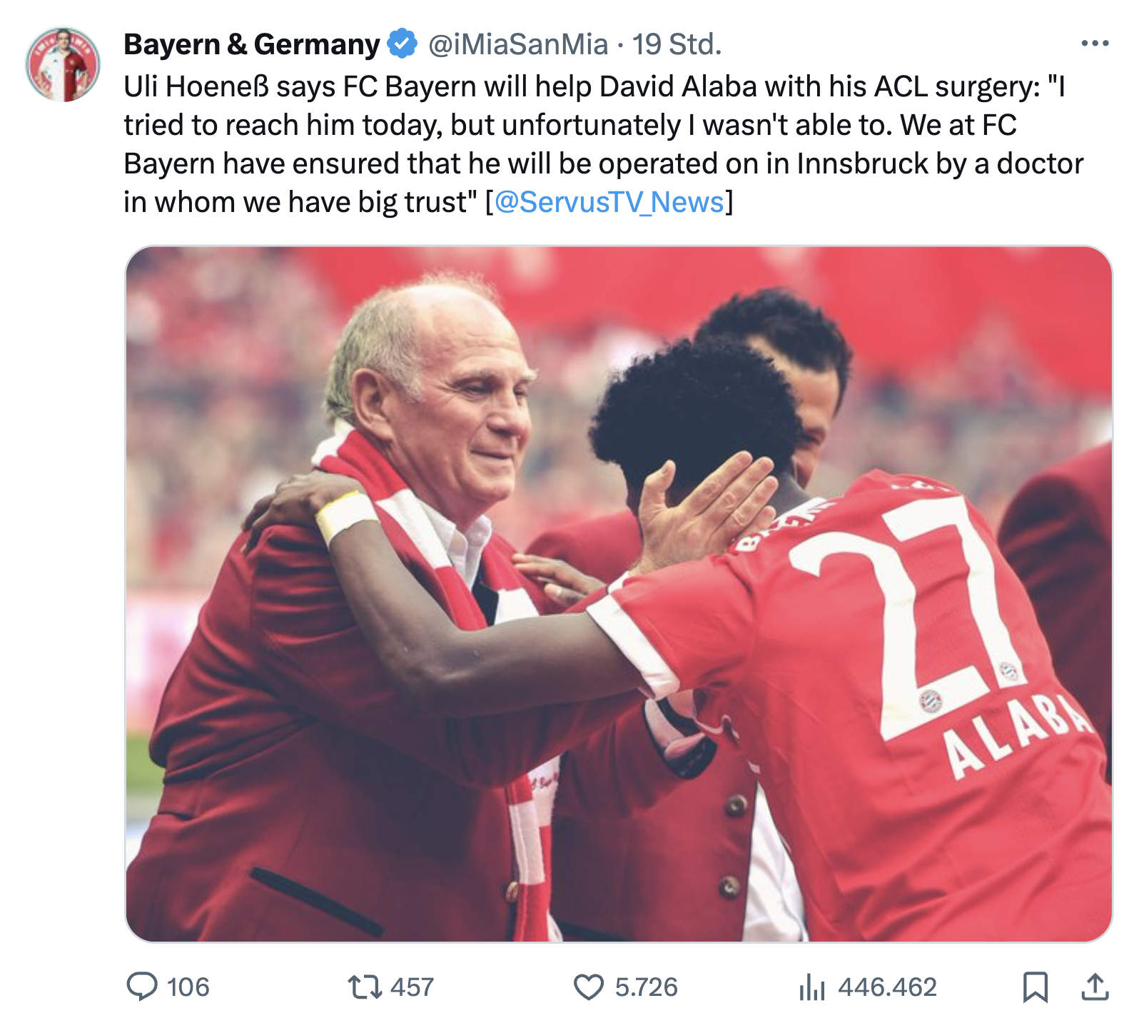 „Ich habe heute versucht, ihn zu erreichen, aber leider ist es mir nicht gelungen. Wir vom FC Bayern haben schon dafür gesorgt, dass er in Innsbruck von unserem Arzt operiert werden kann, da wir großes Vertrauen in ihn haben“
