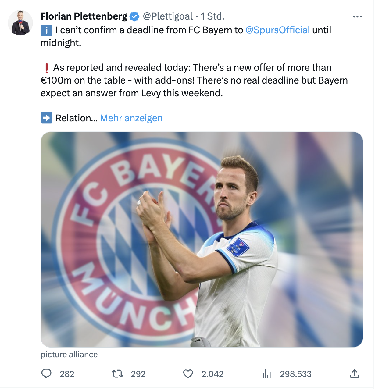 Via Twitter sind sich mittlerweile fast alle Experten einig: Tottenham wird das letzte Angebot der Bayern abnehmen!
