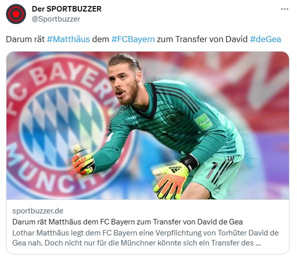 Zuletzt wurde de Gea neben Bayern auch mit Paris St. Germain und Ronalo-Klub Al-Nassr in Verbindung gebracht.