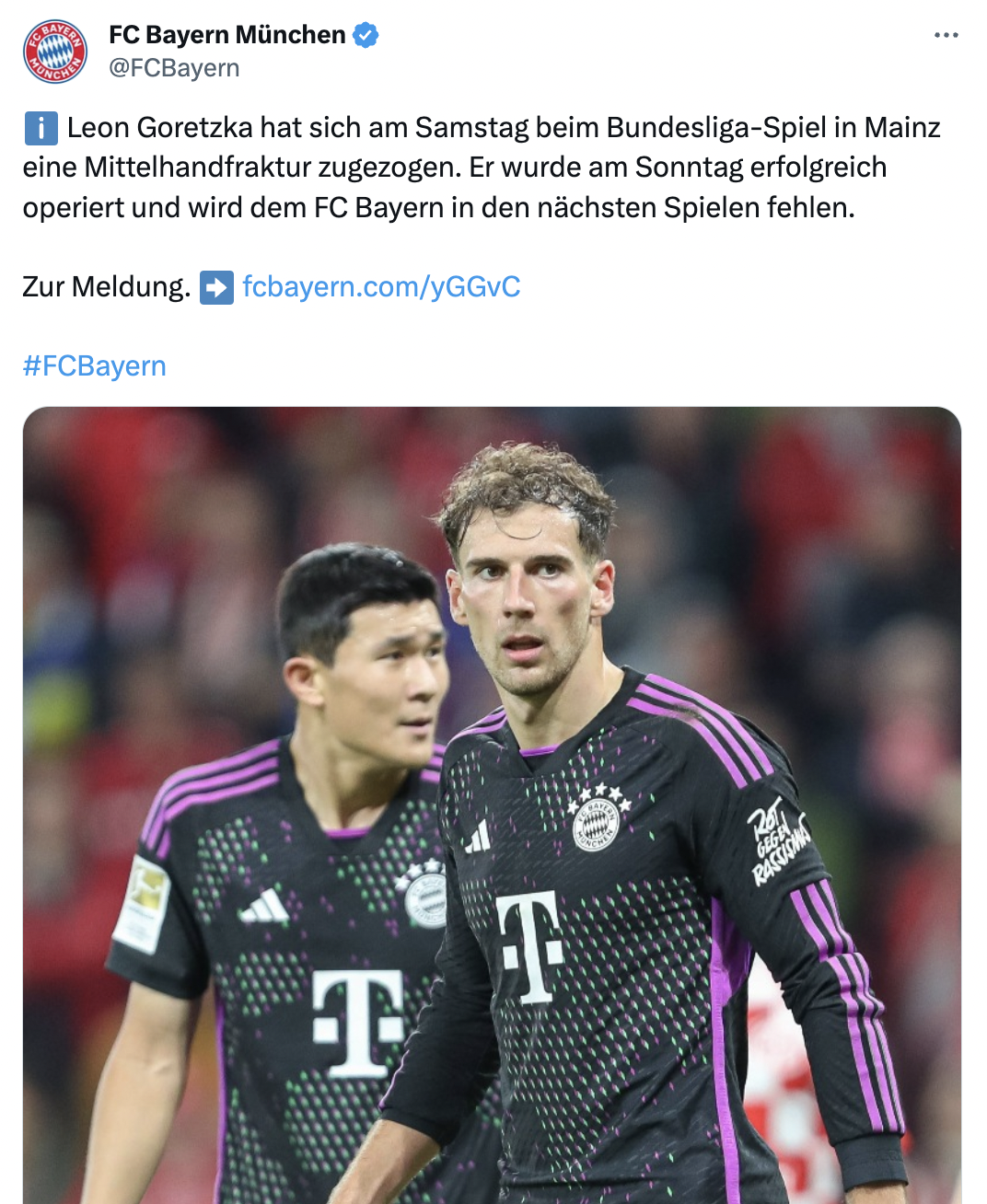 „Er wurde am Sonntag erfolgreich operiert und wird dem FC Bayern in den nächsten Spielen fehlen“