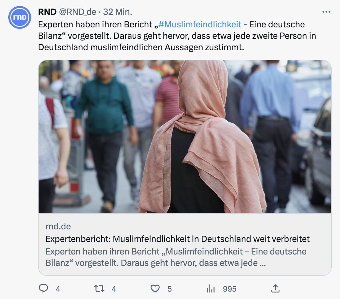 Die Ergebnisse der Untersuchung werden am Donnerstag erstmals öffentlich. Laut Experten ist Muslim-Feindlichkeit in Deutschland weiter verbreitet als bisher angenommen.