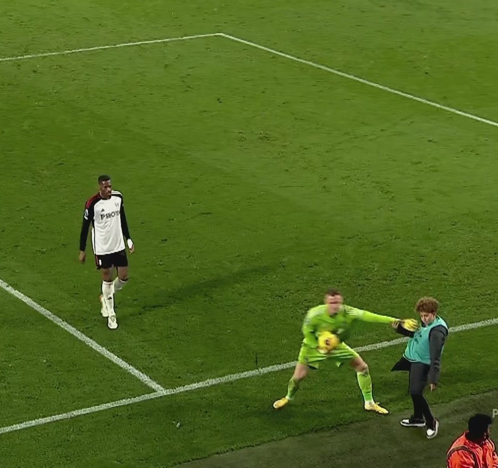 Als er beim Rückstand von 2:0 den Ball hinter dem Tor holen will, läuft ein Balljunge mit der Kugel auf ihn zu.