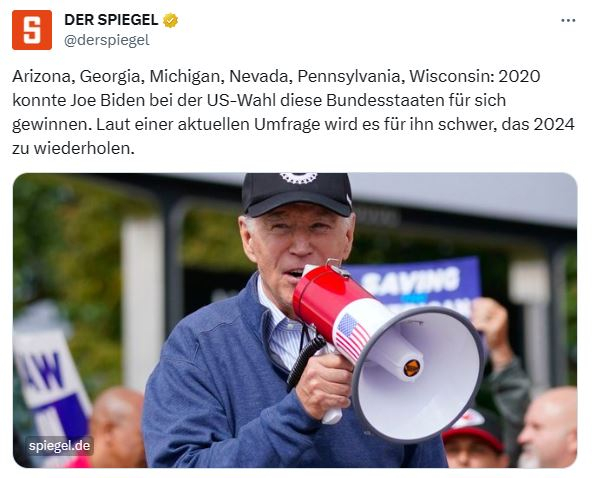 In 5 der 6 Swingstates liegt Trump in Umfragen vorne! Sollte dies auch bei der Wahl so aussehen, wäre das der sichere Sieg.