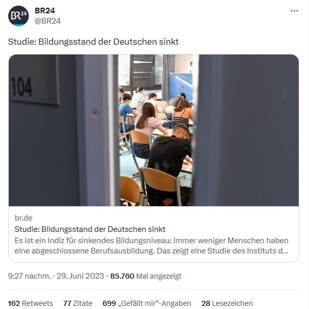 Das Bildungsniveau in Deutschland geht weiter zurück. Immer weniger Menschen verfügen über eine Berufsausbildung.