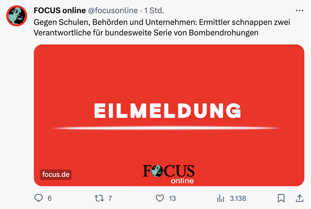 Die über 250 Drohungen lösten bundesweit in mehr als 30 Fällen Polizeieinsätze aus, häufig verbunden mit umfangreichen Evakuierungs-Maßnahmen.