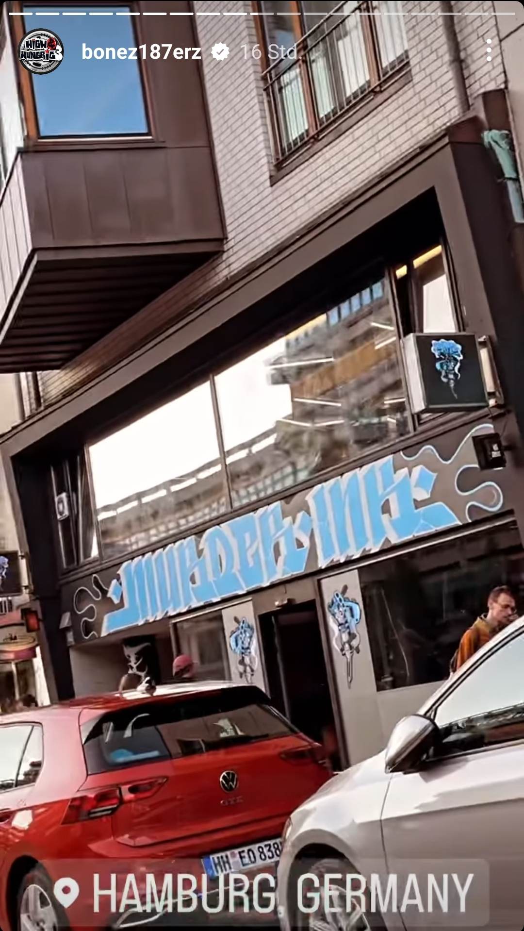 In seiner Instagram-Story präsentiert Bonez MC seinen neuen Laden „Murder Ink“ in Hamburg.