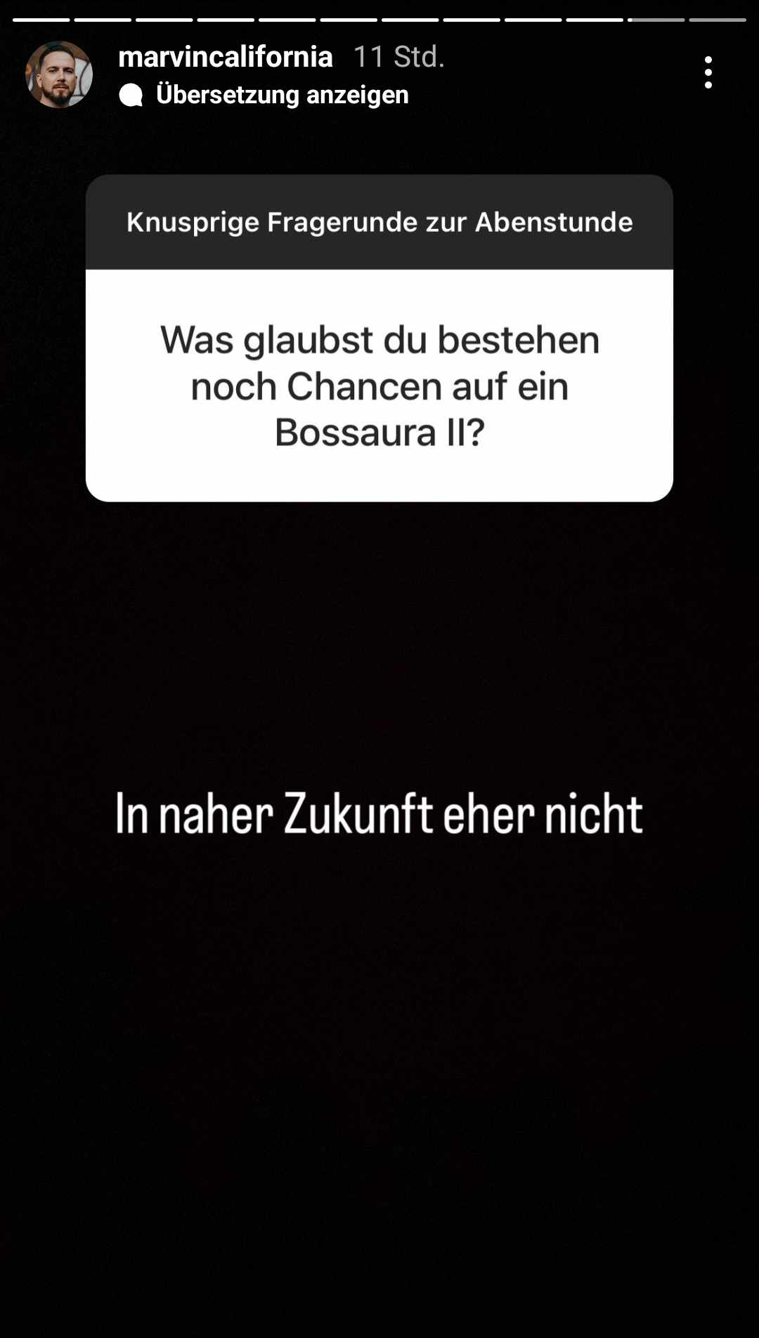 Im Rahmen einer Fragerunde erkundigt sich ein User, ob Marvin glaubt, dass Chancen auf ein baldiges Release von „Bossaura 2“ bestehen. Die Antwort ist eindeutig…