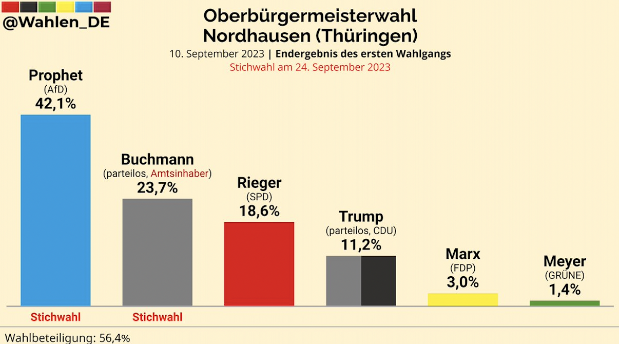 Nach dem ersten Landrat gibt es in Thüringen wohl bald auch den ersten Oberbürgermeister der AfD. Die Wahl am Sonntag hat ein klares Ergebnis – 20 Prozent Vorsprung!