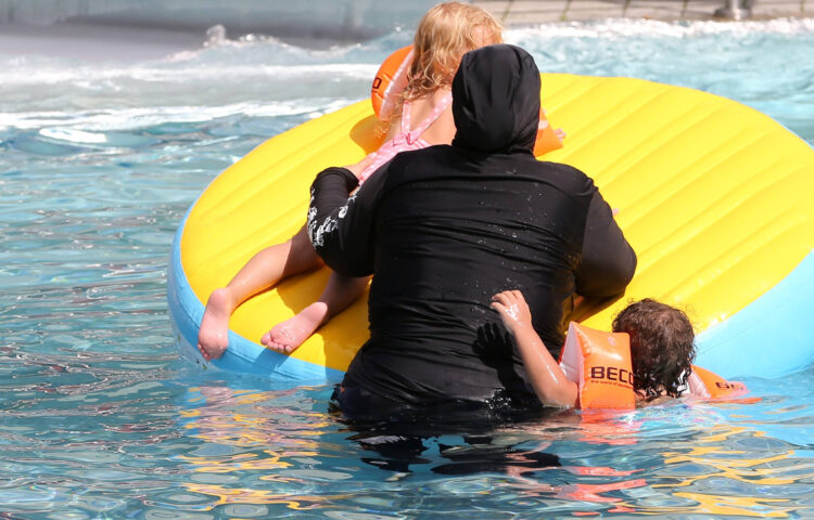 In manchen Bädern sind Burkinis aus religiösen Gründen zugelassen. In Daaden im Westerwald muss eine Türkin allerdings vom Beckenrand zuschauen, wenn ihre drei Kinder (3,5,8) im Wasser sind.
