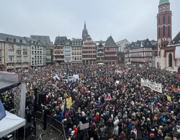 Jeden Tag protestieren die Menschen in Deutschland zur Zeit gegen Rechts. Heute strömen die Demonstranten in die Innenstadt von Frankfurt… bis 35.000 Der Platz vor dem Römer ist...