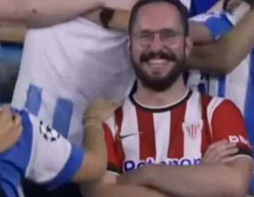 Er steht komplett allein unter den Fans des Gegners. Sein Team liegt gegen Real Sociedad mit 0:3 hinten. Doch dieser Bilbao-Fan lacht trotzdem – Millionen Fans feiern ihn...