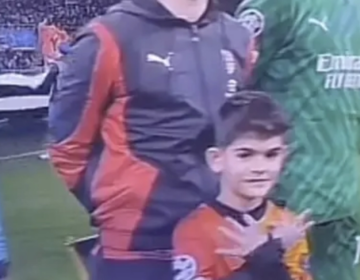 Es ist DIE Chance für ihn. Und er nutzt sie! Der kleine Junge ist nur Sekunden im Bild zu sehen, kurz bevor das Spiel Milan gegen BVB beginnt...