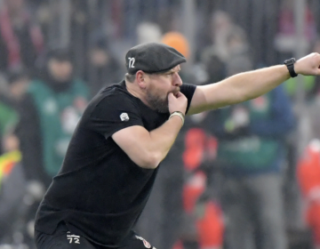 Es ist eiskalt beim Spiel Bayern gegen Köln in München. 1 Grad! Interessiert FC-Trainer Baumgart null: Er zieht plötzlich seinen Hoodie aus – und coacht im T-Shirt! HIER...