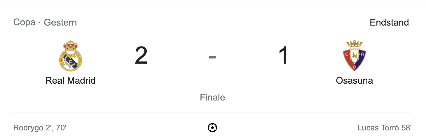 Real Madrid hat es mal wieder geschafft: Durch ein 2:1 gegen Osasuna gewinnen die Königlichen am Samstag Abend den Pokal und sichern sich damit den ersten Titel…