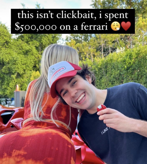 Von diesem Geld hat sie David den roten Flitzer gekauft.