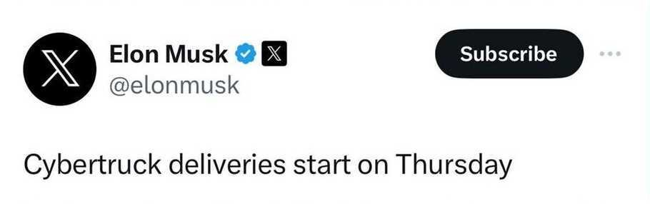 Auf X (ehemalig Twitter) verkündet es Elon Musk: Ab dem 30. November beginnt die Auslieferung des jetzt schon legendären Cybertrucks von Tesla.
