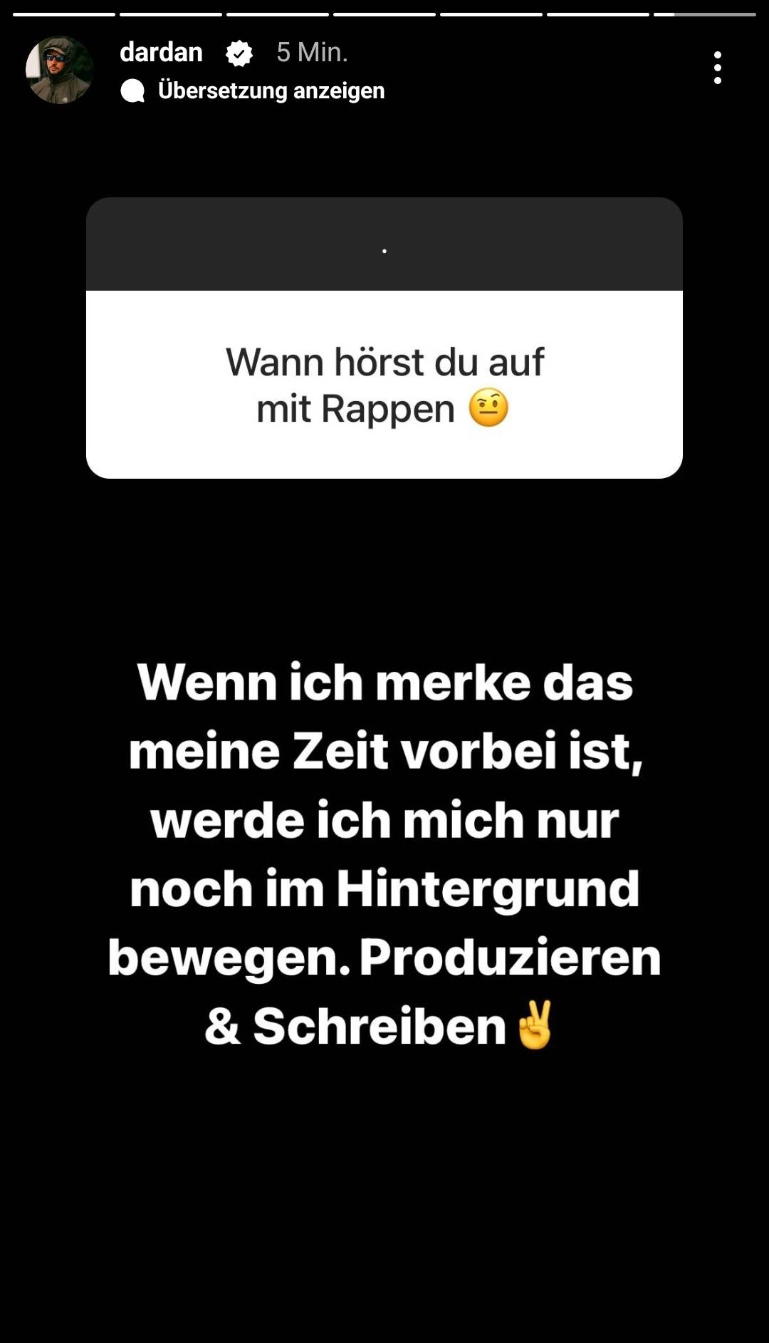 Im Rahmen einer Fragerunde erkundigt sich ein User, wann Dardan mit Rap aufhört. Die Antwort ist deutlich:
