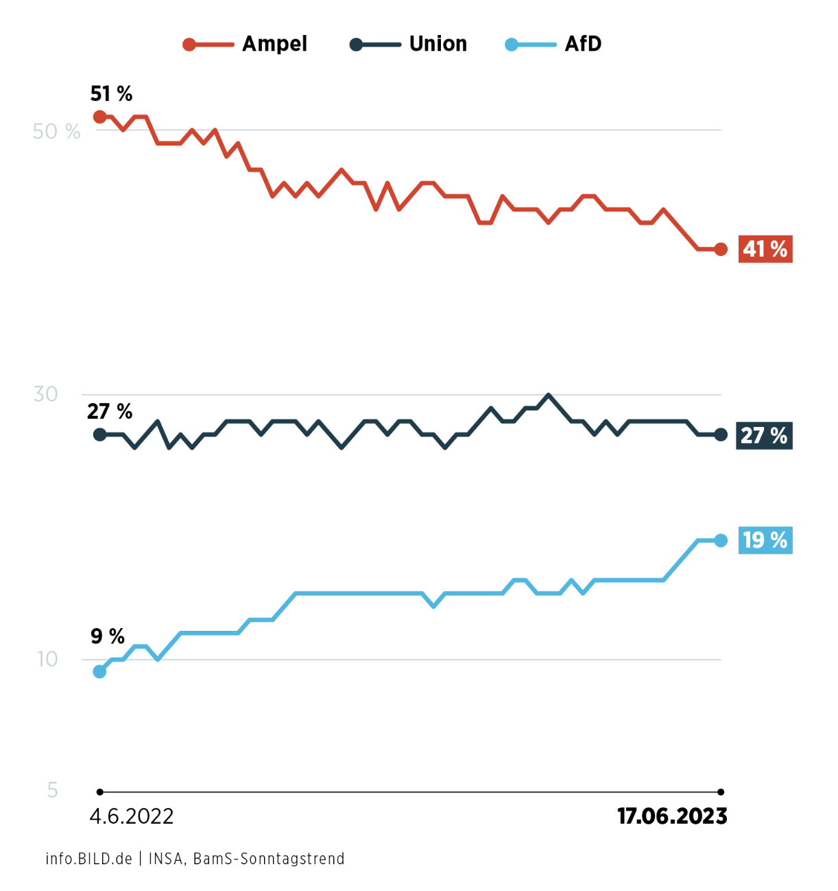 DAS PROBLEM: Wer sich die folgende Grafik anschaut sieht, dass der SPD, FDP und den Grünen die Felle wegschwimmen.