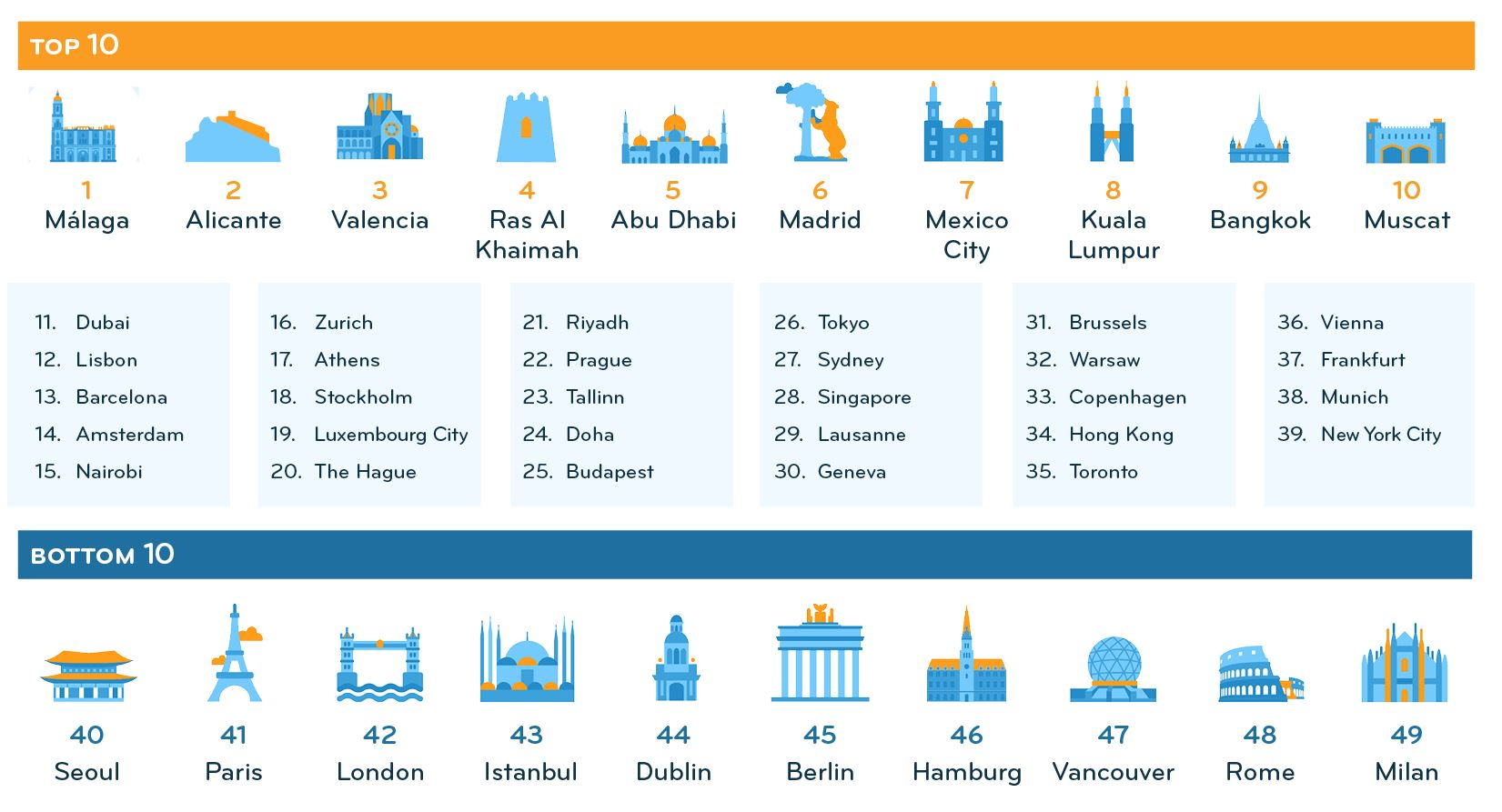 Dahinter landen mit Alicante und Valencia zwei weitere spanische Städte auf dem Podium.