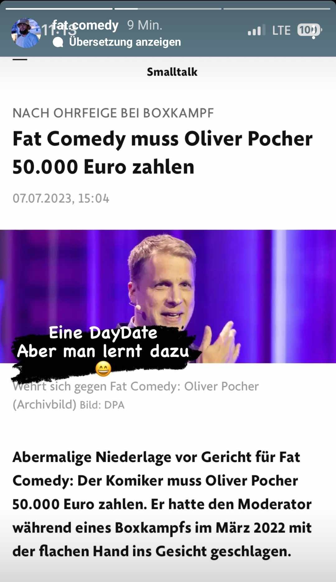 FatComedy selbst scheint das Urteil jedoch locker zu nehmen. In seiner Instagram-Story teilt er es und schreibt dazu: