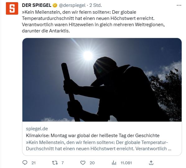 So warm war es weltweit durchschnittlich am vergangenen Montag. Noch nie wurde zuvor die Marke von 17 Grad Celsius geknackt!