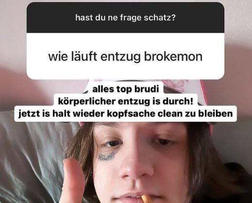 In einer anderen Story schreibt T-Low, dass er den körperlichen Entzug (wieder mal) hinter sich hat und es jetzt nur noch “ Kopfsache“ ist.