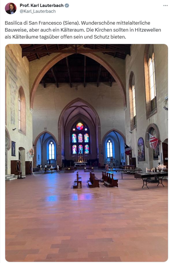 „Herr Lauterbach rennt offene Türen ein. In unseren Kirchen sind alle herzlich willkommen, zum Gebet, zur Andacht, aber auch zum Schutz vor Hitze“