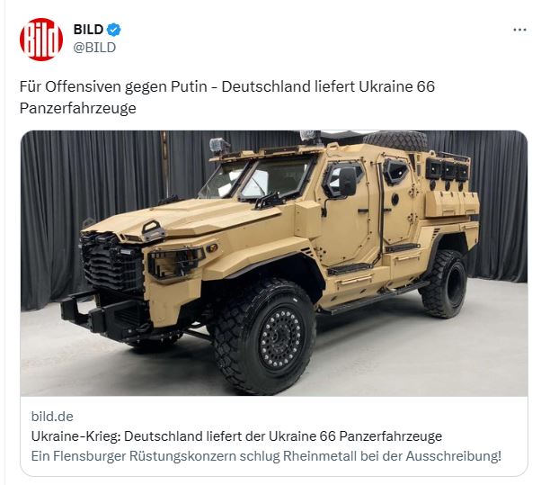 Wie die Bild berichtet, handelt es sich um das gepanzerte US-Fahrzeug „BATT AMG“, welches dank US-Lizenzen nun auch in Deutschland gefertigt wird.