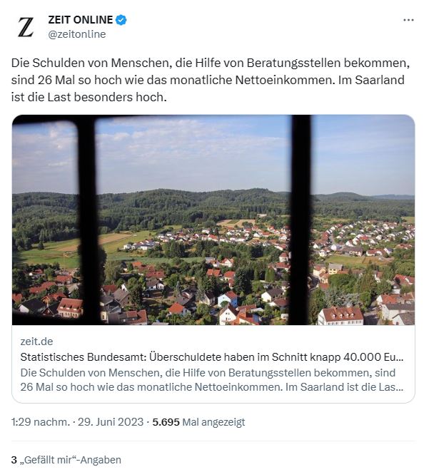Besonders hoch ist der Wert im Saarland. Betroffene haben dort eine Verschuldung von durchschnittlich 34.308 Euro.