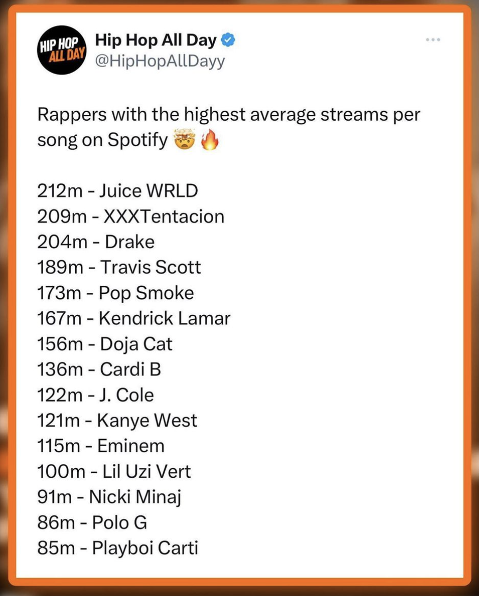 Rap ist aktuell beliebter als je zuvor. Jetzt gibt es eine neue Auflistung der Musiker mit den meisten Streams pro Song…
